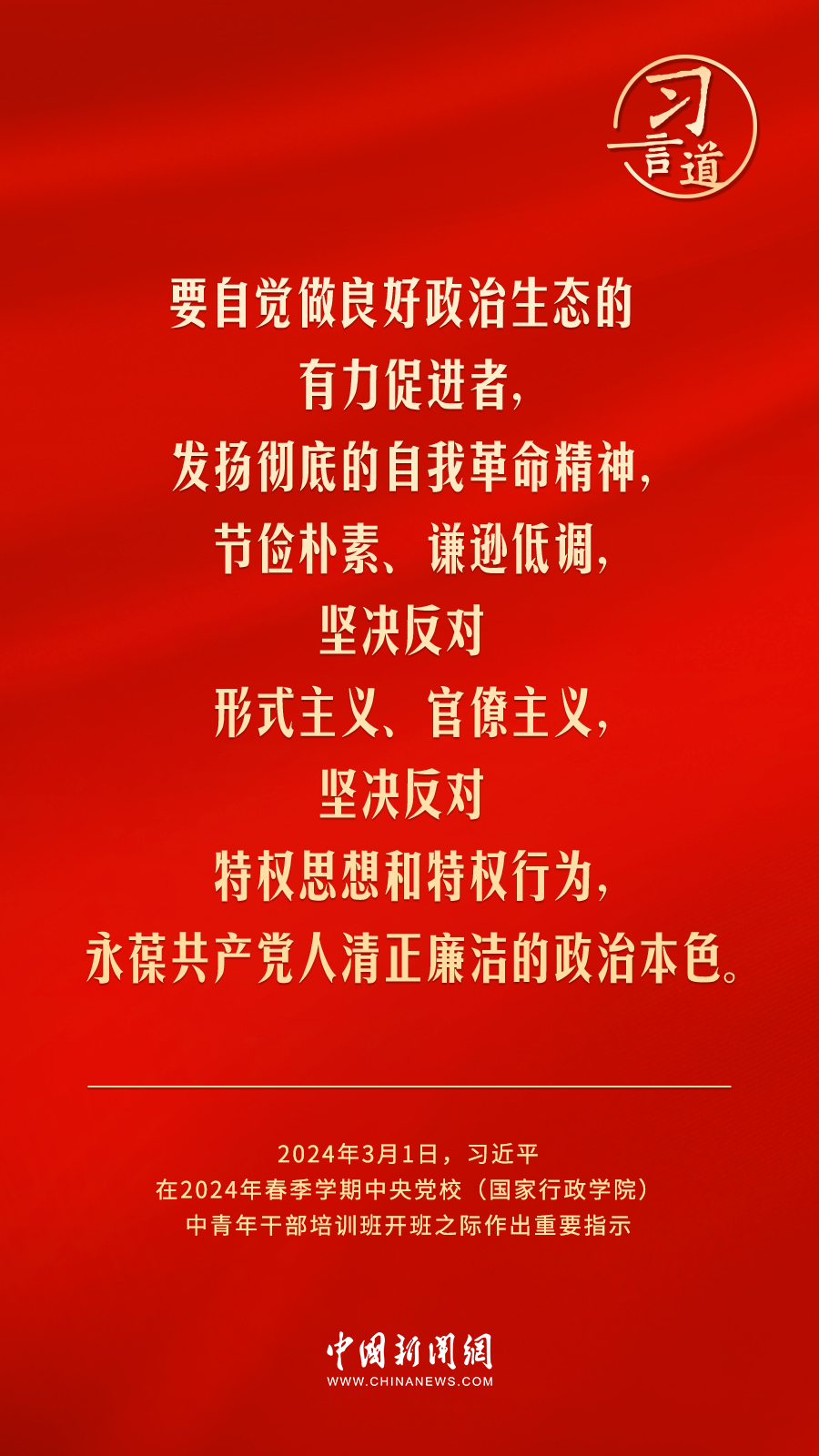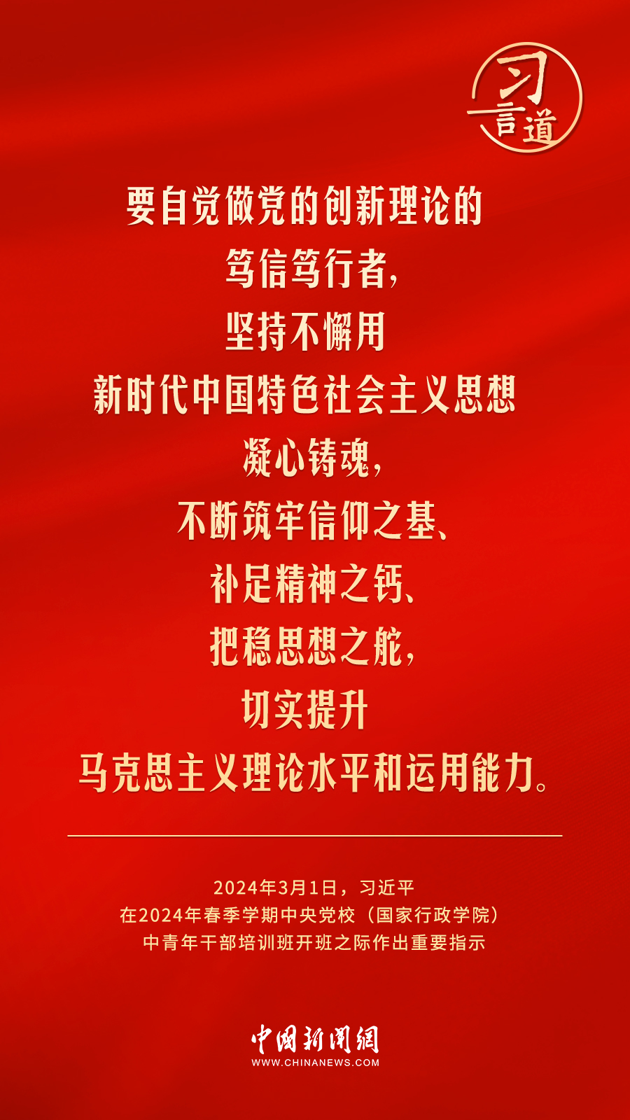 2024年春季學(xué)期中央黨校(國(guó)家行政學(xué)院)中青年干部培訓(xùn)班3月1日上午在中央黨校開班。中共中央總書記、國(guó)家主席、中央軍委主席習(xí)近平作出重要指示,他強(qiáng)調(diào)——