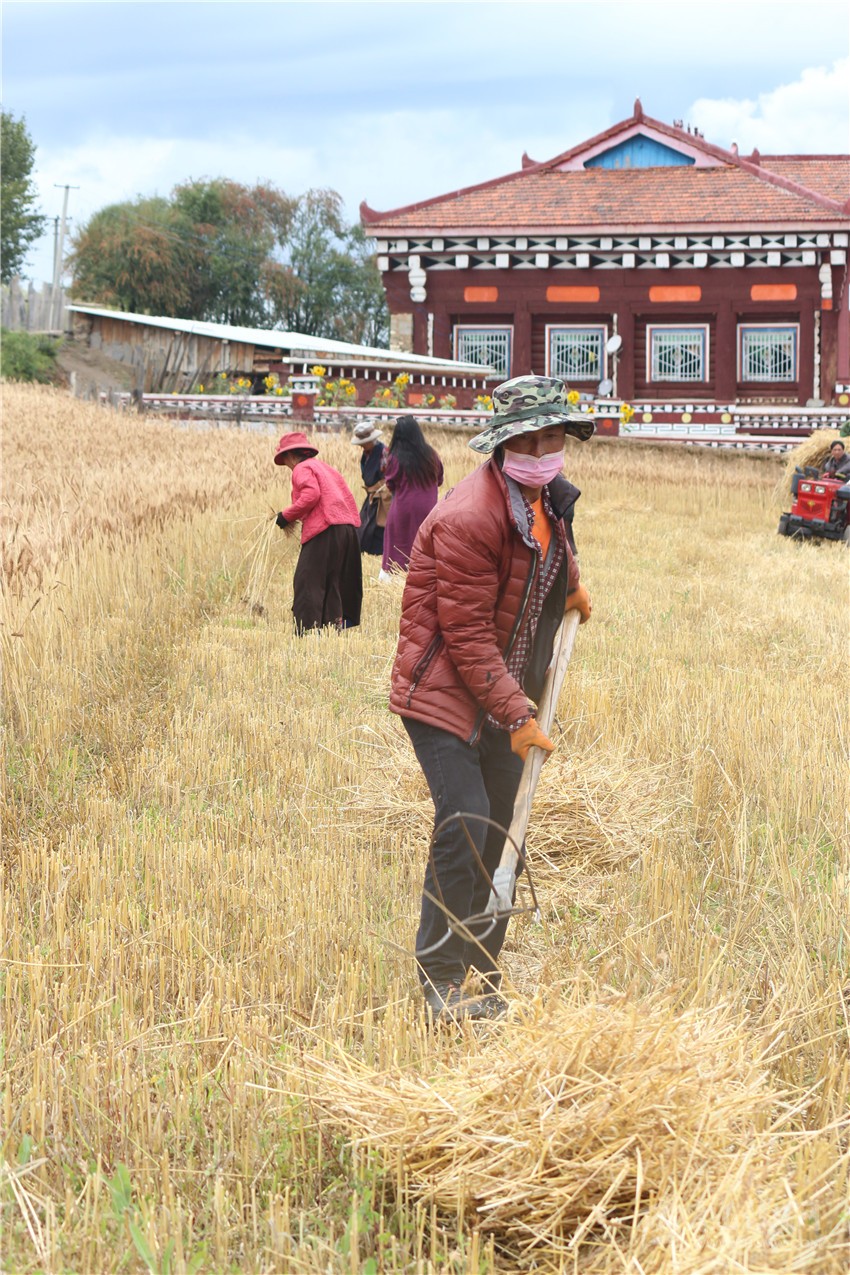 收割機、拖拉機、鐮刀……日前,爐霍縣仁達鄉(xiāng)村民用現(xiàn)代與傳統(tǒng)兼具的各種農(nóng)業(yè)設(shè)備開啟了歡快的“收割大戰(zhàn)”。