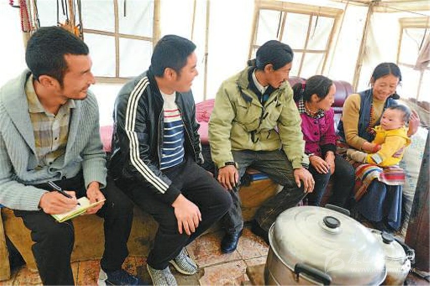 ②雷旭(左二)和群珠(左一)來(lái)到與合作社簽約的牧民家中了解情況。