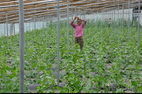 為進(jìn)一步做大做強(qiáng)蔬菜產(chǎn)業(yè),瀘定縣穩(wěn)步實(shí)施《高半山特色生態(tài)農(nóng)業(yè)發(fā)展規(guī)劃》,優(yōu)質(zhì)魔芋、高產(chǎn)核桃、特色水果播面分別達(dá)11000畝、9000畝、7120畝;建成現(xiàn)代農(nóng)業(yè)產(chǎn)業(yè)基地8.65萬(wàn)畝、高產(chǎn)高效創(chuàng)建基地2.4萬(wàn)畝,蔬菜種植面積達(dá)2.5萬(wàn)畝,蔬菜基地灌溉保證率達(dá)90%,蔬菜良種、基地綠色防控覆蓋率均達(dá)100%。圖為德威鄉(xiāng)磨子溝村村民在蔬菜大棚內(nèi)忙碌。(尼胡克布 攝影報(bào)道)