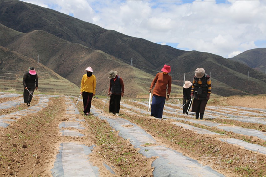 “把蔬菜種植技術(shù)學(xué)精通了,我就可以回家種菜,如果產(chǎn)量拿得上去,靠賣蔬菜,一年的收入也不少?!卑赚斍湔f,外出打工太遠(yuǎn),照顧不到家庭,而且除了開銷一天還掙不到100元。她的丈夫澤翁降村帶著大兒子外出打工,去年3—6月就掙了2.3萬元,定布村千畝蔬菜、中藏藥材高產(chǎn)有機(jī)示范種植基地開建后,丈夫用自己的拖拉機(jī)在工地務(wù)工,一天給的工錢是500元,做了35天就掙了2萬多元。