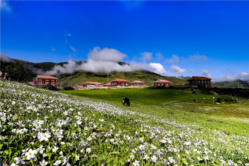 “鄉(xiāng)干部安排我負(fù)責(zé)管理度假村,我當(dāng)即承諾,度假村是我們一手培育起來的產(chǎn)業(yè),就像我們的孩子,我們要精心呵護它健康成長。我們修建了特色住宿,完成生態(tài)廁所、停車場等配套基礎(chǔ)設(shè)施,拓展騎馬、射箭、土特產(chǎn)銷售等業(yè)務(wù),同時借助幫扶單位樂山職業(yè)技術(shù)學(xué)院的力量,有信心把度假村打造成一流的牧旅融合休閑旅游目的地,宗塔草原這片七色花海將會為群帶來七彩生活。”村民道出了對度假村的期望。