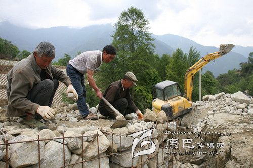 姚在文(中)帶領村民治理滑坡。