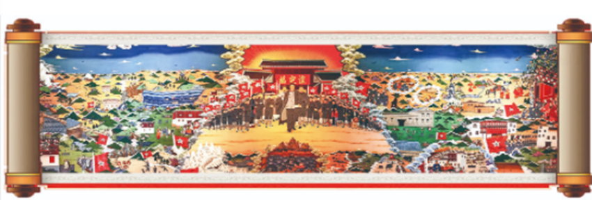 長6.45米、寬1.65米的畫布上,近大遠(yuǎn)小的透視與明暗關(guān)系的變化交織,旖旎同嵯峨并現(xiàn),栩栩如生地將80多年前發(fā)生在這片甘孜高原的紅軍長征史詩圖景完整還原:“飛奪瀘定橋”“朱德總司令與格達(dá)活佛的深厚情誼”“甘孜勝利會師”……16個組圖場景、32個故事片段、1415個人物形象,經(jīng)過爐霍20名郎卡杰唐卡畫師600多個日夜繪制,一幅用非遺技藝弘揚紅色精神的巨幅唐卡《紅星照耀雪域》震撼完成?!都t星照耀雪域》將“紅軍長征在甘孜”的歷史事件,在國家級非遺代表性項目郎卡杰畫派唐卡的描繪下“躍然紙上”,生動形象地展示出甘孜大地上各民族共同團結(jié)奮斗的軍民魚水情。