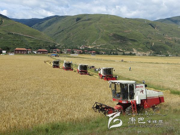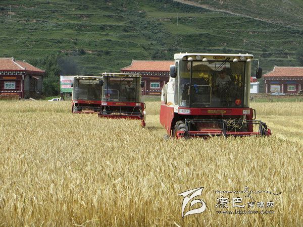 本網(wǎng)訊(胡筱紅 龍正芳 文/圖) 高原的八月是絢麗多彩的時(shí)節(jié),是糧食收獲的季節(jié)。爐霍縣300畝全程機(jī)械化青稞作業(yè)示范片項(xiàng)目機(jī)收工作于8月20日正式啟動(dòng),共出動(dòng)大型聯(lián)合收割機(jī)5臺(tái)、拖拉機(jī)5臺(tái)同時(shí)作業(yè),正常情況下一臺(tái)收割機(jī)一天可以收割65至70畝,青稞示范片不出5天就能完成收割。對(duì)比以往的種植和收獲方式,全程機(jī)械化作業(yè)從播種到收獲帶來(lái)的社會(huì)效益及經(jīng)濟(jì)效益都遠(yuǎn)遠(yuǎn)高于傳統(tǒng)種植方式。