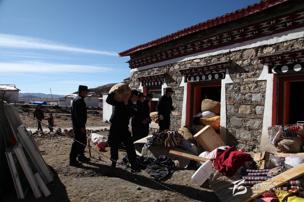 26日一大早,記者驅(qū)車(chē)趕往塔公江巴村采訪,在江巴村一戶(hù)受災(zāi)群眾家院壩內(nèi),看到了一群熟悉的聲影,他們正在幫村民巴扎轉(zhuǎn)移糧食。村民巴扎家堆放糧食的房屋外墻受地震影響裂開(kāi)了幾到明顯的口子,磚瓦散落一地。主人家非常擔(dān)心房子垮了將糧食掩埋,這是他辛苦了一年的勞動(dòng)成果,更是一家人過(guò)冬的口糧,正當(dāng)巴扎心焦如何將這兩千余斤糧食如何轉(zhuǎn)移到安全地帶時(shí),他們出現(xiàn)了。當(dāng)他們了解到巴扎想盡快把糧食和其他物品轉(zhuǎn)移到安全地點(diǎn)時(shí),他們二話不說(shuō),簡(jiǎn)單分工后,馬上就忙開(kāi)了。他們扛的扛、拉的拉、背的背、抬的抬……很快就將糧食以及其他零散物品轉(zhuǎn)移到巴扎家的安全地帶??吹竭@一切,一旁的巴扎對(duì)他們翹起了大拇指用很不流利的漢語(yǔ)說(shuō)到:實(shí)在太感謝你們了,卡卓、卡卓……