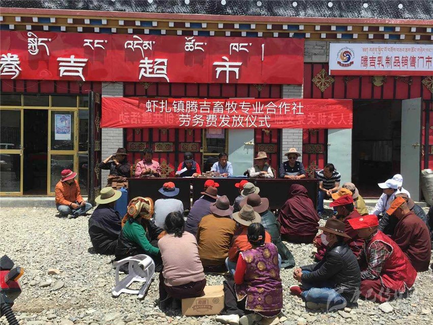 “精準(zhǔn)扶貧”貴在“精準(zhǔn)”,精確找準(zhǔn)“貧困癥結(jié)”,準(zhǔn)確“對(duì)癥下藥”;由于塔須村惡劣的自然環(huán)境制約,村民們還過著古老傳統(tǒng)的游牧生活,導(dǎo)致塔須村社會(huì)、經(jīng)濟(jì)、文化發(fā)展相對(duì)滯后,全村無集體經(jīng)濟(jì)產(chǎn)業(yè),屬于我州貧困村中的“貧中之貧”,以往傳統(tǒng)的扶貧措施猶如“灑胡椒面”,治標(biāo)不治本;“授人以魚,不如授人以漁”,為讓塔須村能建立村集體產(chǎn)業(yè),村民們能掌握一門致富手藝,州水務(wù)局結(jié)合塔須村實(shí)際,多次派遣工作組深入塔須村,了解貧困戶生活現(xiàn)狀、致富愿望,聽取村兩委干部建言,形成專題脫貧報(bào)告;鑒于牧民致富愿望強(qiáng)烈,村干部建言獻(xiàn)策,在州水務(wù)局的積極協(xié)調(diào)下,在蝦扎鎮(zhèn)黨委、政府的倡導(dǎo)下,經(jīng)石渠縣人大牽頭,通過州級(jí)各聯(lián)系單位、駐村幫扶工作組和村兩委的努力,整合各方人力、物力、財(cái)力,團(tuán)結(jié)協(xié)作,于2016年3月成立了“石渠縣蝦扎騰吉畜牧專業(yè)合作社”,并選舉出9名致富能手為騰吉專業(yè)合作社理事人選。“騰吉合作”乃飛騰吉祥之意,寓意著牧民群眾齊心協(xié)力,共奔小康。