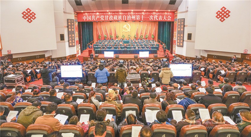 中國共產(chǎn)黨甘孜藏族自治州第十一次代表大會在康定劇場開幕。