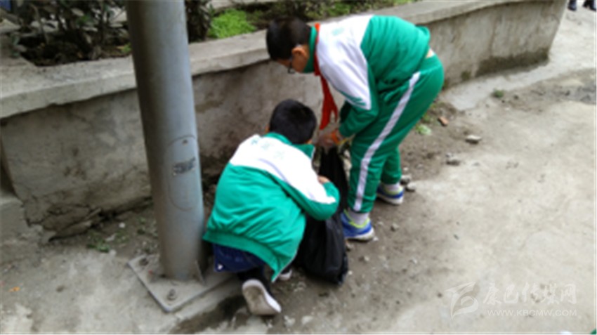 下午放學(xué)后,師生們帶著清潔工具從學(xué)校出發(fā),依次對康定中學(xué)橋頭到農(nóng)科所路段進(jìn)行了垃圾清理。雖然雨后的道路多泥濘,但是師生們不怕臟不怕累,干得熱火朝天。一個(gè)三年級(jí)的學(xué)生戴著手套掏出塞在下水溝縫里的垃圾,他對同學(xué)說:“真臭啊,我們以后一定不能亂扔垃圾了?!痹趲熒鷤兊墓餐ο?,道路變得干干凈凈。