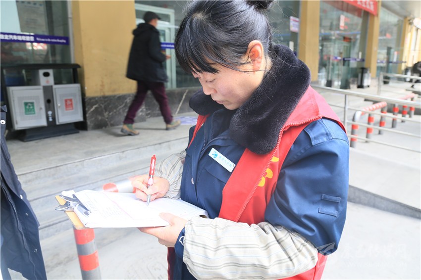 工作人員仔細記錄每輛駛出客車情況。