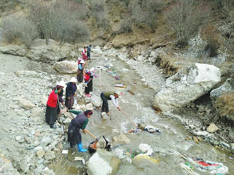 說干就干,黃先明帶領(lǐng)駐村工作隊(duì)隊(duì)員和村兩委班子成員不畏嚴(yán)寒,首先把全村的道路、公共設(shè)施場地進(jìn)行了清掃,把道路兩邊的小土堆全部鏟平并種上花草,把村民房前屋后的柴火、廢料等重新清理并制定擺放標(biāo)準(zhǔn)。在河道整治中,黃先明帶領(lǐng)村干部沖在前面,對不容易清理到的垃圾,還跳到河里去撿。3月的高原還很冷,鞋子很快被交納河水打濕,但大家全然不顧?!包S隊(duì)長都帶頭干,我們更要努力。”交納村村民巴登鄧珠說。