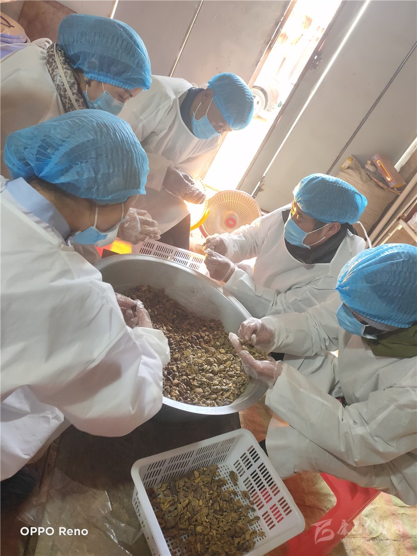 清點菜品、登記,整個過程都采取了嚴格的防護措施,澤汪用酒精在包裝箱上消毒后,通知員工收藏菜品。