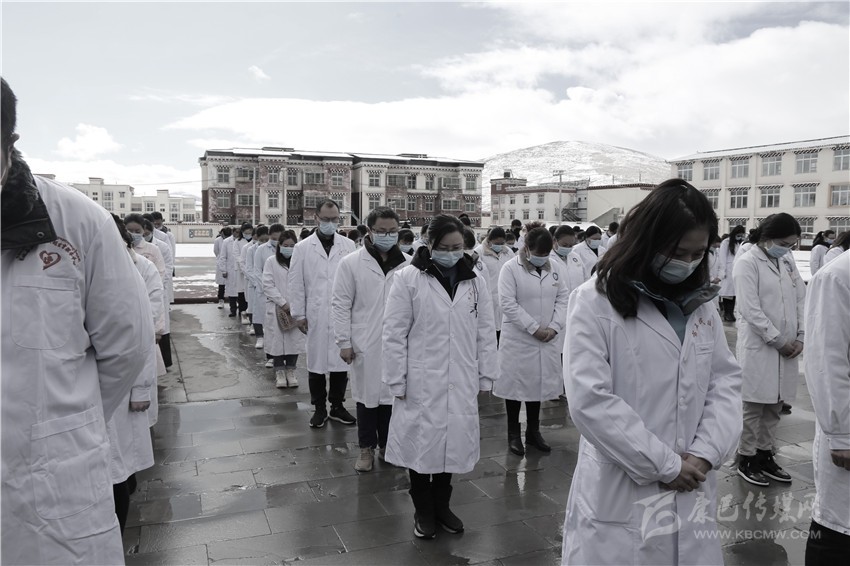色達縣醫(yī)務(wù)工作者向新冠肺炎疫情犧牲烈士和逝世同胞默哀。