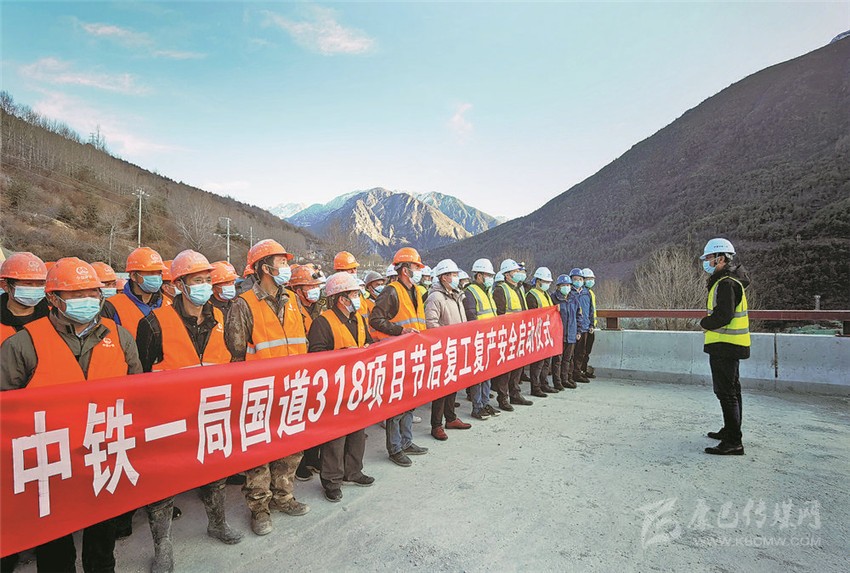 中鐵一局國道318線康定市過境段公路工程項目舉行復(fù)工儀式。