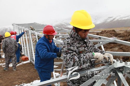 石渠縣海拔高,長(zhǎng)冬無夏,空氣含氧量?jī)H為成都平原的45%,電力建設(shè)面臨著“高原高寒缺氧、生態(tài)環(huán)境脆弱、凍土區(qū)沼澤區(qū)施工”等世界性難題。在這里走路稍微快一點(diǎn)都要大口喘氣,更何況在高山雪地上施工,搬運(yùn)建材,其施工難度可想而知。石渠至洛須110KV工程是國(guó)網(wǎng)成都供電公司承擔(dān)“電力天路”工程項(xiàng)目中唯一一條110kV電壓等級(jí)線路工程,是連接石渠變電站和在建的110kV洛須變電站的主要電力通道,線路全長(zhǎng)為64.268km,新建鐵塔187基,沿線海拔高度為3300~4800m,線路多在雪山脊梁及斜坡走線。4月的石渠高原,依然是冰天雪地,寒風(fēng)呼嘯,在石渠至洛須110KV線路87基塔基澆筑現(xiàn)場(chǎng),這里海拔4500多米,然而這里卻是一片熱火朝天的場(chǎng)景,一頂頂黃色安全帽下,急促呼吸冒出的熱氣讓每一個(gè)人的面目更加模糊?,F(xiàn)在內(nèi)地正是春暖花開,春意盎然的季節(jié),而我們的施工現(xiàn)場(chǎng)確實(shí)冰天雪地,為了讓廣大農(nóng)牧民早日用上電,四川電建工人們克服高寒、缺氧等惡劣自然條件,正在抓緊施工。110kV線路有的建設(shè)段施工人員靠相互扶持摸索上山,有的施工點(diǎn)一個(gè)來回要走6個(gè)多小時(shí),材料、工器具都必須靠驢隊(duì)及索道運(yùn)輸。為了搶工期節(jié)約時(shí)間工程建設(shè)者克服嚴(yán)重的高寒缺氧等惡劣的自然條件吃住在雪山上,累了、呼吸困難時(shí)吸口氧,渴了吃一把身邊的“雪糕”。到今年4月30日,“電力天路”石渠境內(nèi)工程進(jìn)度已完成工程總投資的40%。