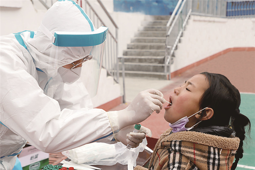 圖為醫(yī)護人員正在為學(xué)生做核酸檢測。