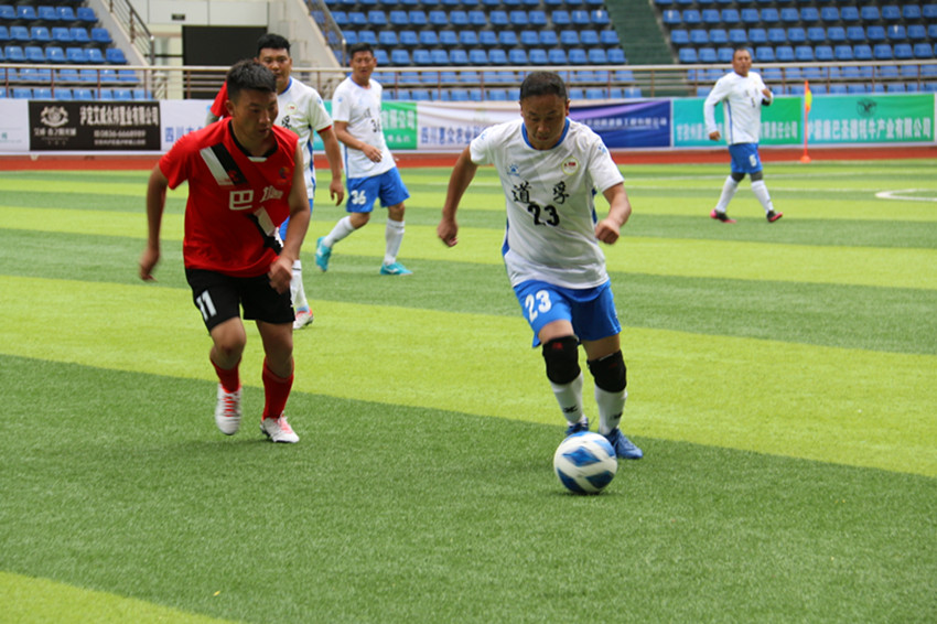 在下午的總決賽中,球場(chǎng)的氣氛被推向了最高潮,雖然小雨淅瀝,但球員和球迷的氣氛依舊不減,康定隊(duì)和甘孜隊(duì)都極力渴望突破重圍奪得桂冠,登上冠軍寶座。在上半場(chǎng)比賽中,雙方球員頑強(qiáng)拼搏,積極進(jìn)攻,嚴(yán)密防守,為本屆運(yùn)動(dòng)會(huì)足球賽的最后一場(chǎng)比賽全力以赴。在屢次界外球與定位球之后,裁判哨聲響起,上半場(chǎng)比賽結(jié)束,比分仍然定格在0:0。