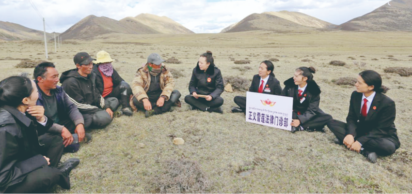 圖為正義雪蓮女子審判團(tuán)隊(duì)的法官在蟲草采集點(diǎn)開展法治宣講。