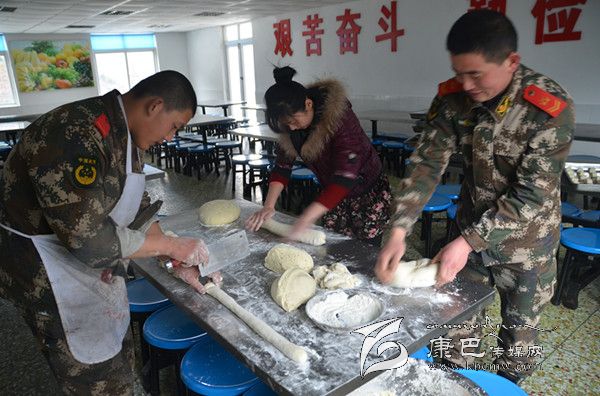 時值大暑季節(jié)的川西高原依然寒風(fēng)凜冽,一抹朝陽灑在山頂積雪上,散發(fā)出黃白相間耀眼的光芒。此時,工化中隊廚房里鍋碗瓢盆開始演奏新一天的樂章,幾名炊事員忙來忙去,只見中隊長杜培峰的妻子李曉霞正蹲在門口幫著洗菜,“小杜跟我說中隊的炊事員最辛苦,讓這些小伙子炒菜做飯,真是難為他們了……”,四川妹子李曉霞用手擦了擦額頭的汗珠對筆者說。正說著,炊事班長跑過來一把端走李曉霞面前的菜盆:“嫂子,你這么早起來瞎忙活什么???你感冒還沒好呢,快回去休息吧!”