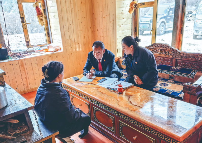 呂啟雄(中)和同事走訪群眾了解案情。