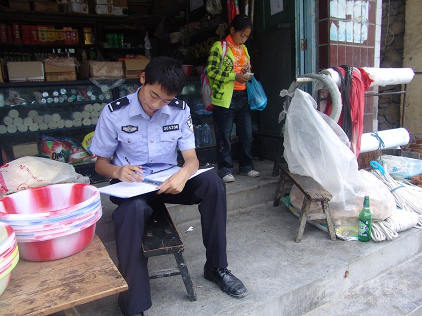 鄭劍勘查案發(fā)現(xiàn)場(chǎng)。