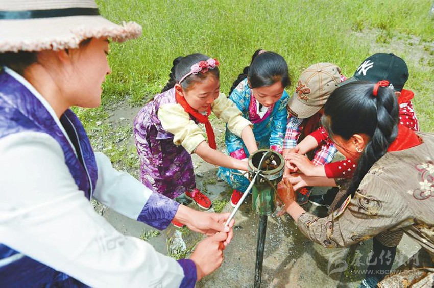 山泉清冽,汩汩流淌,浸潤農(nóng)牧民群眾心田。老人的女兒呷絨曲西正在洗手盆處給兩個孩子洗手。她接過話頭:“以往與牛馬一起喝河水,不衛(wèi)生,吃了三天兩頭拉肚子;現(xiàn)在喝山泉水,水衛(wèi)生人就少得病。以往天天背水弄得腰酸背痛,現(xiàn)在一打開水龍頭,水就來了,方便省力氣。那時最惱火的是洗衣服,只有到河邊去洗,冬天的時候才受罪,水冷得刺骨,像刀割一樣痛;現(xiàn)在好了,衣服往洗衣機(jī)一扔,自動洗衣。”