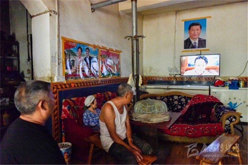 沒客人時,朱國富陪81歲的父親和80歲的母親看電視。張可凡攝。