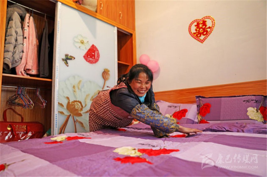 張進(jìn)芬正在整理兒子兒媳的新房床鋪。王曦