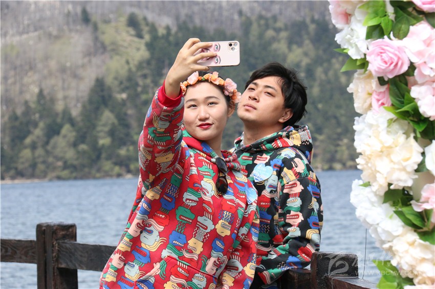“今年已走過20年婚姻歲月?!眮碜猿啥嫉母姘渍哐詵|和王艷是通過網(wǎng)絡(luò)招募的情侶。他們說:“今天很榮幸來參加這個(gè)活動(dòng),木格措很美,在今天這個(gè)特殊時(shí)刻,來到這里打卡,將成為我們婚姻生活里美好的回憶?!?/p>