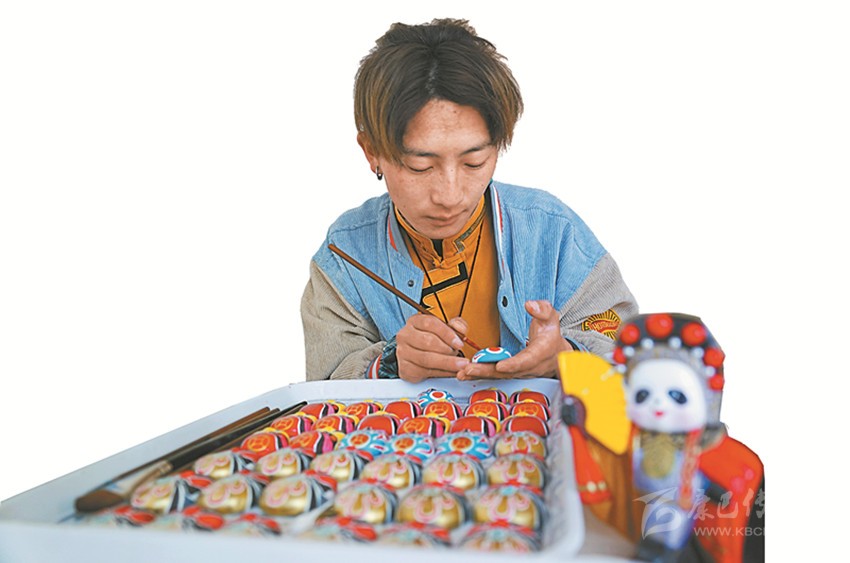 本著自主自愿的原則,教學(xué)班結(jié)束后,65名藏族青年主動(dòng)加入扶貧彩繪實(shí)訓(xùn)班,成為項(xiàng)目的第一批學(xué)員?!皩?shí)訓(xùn)期間不需要交任何費(fèi)用,還包吃住。我對(duì)畫(huà)京劇臉譜很有興趣,我們第一個(gè)月學(xué)習(xí)繪畫(huà)基本功,第二個(gè)月開(kāi)始,根據(jù)成品質(zhì)量,就可以計(jì)件得酬勞,學(xué)習(xí)期間我每月能掙500多元?!壁雠f(shuō)。