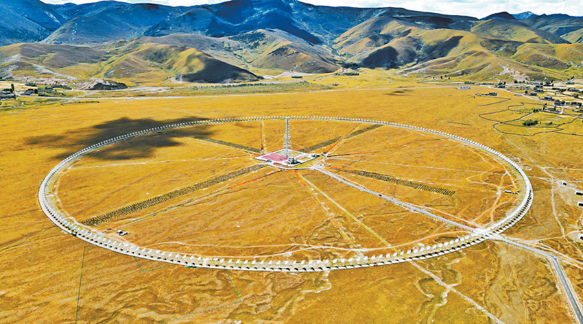 飛機(jī)從稻城亞丁機(jī)場起飛,右側(cè)舷窗外的地面隱現(xiàn)一個小圓點(diǎn),因?yàn)樵煨吞厥猓?dāng)?shù)厝朔Q“千眼天珠”。小圓點(diǎn)其實(shí)一點(diǎn)也不“小”——在海拔3820米的甘孜州稻城縣噶通鎮(zhèn),313部直徑6米的天線,均勻地分布在直徑1公里的圓環(huán)上。它的正式名字叫圓環(huán)陣太陽射電成像望遠(yuǎn)鏡(下稱“圓環(huán)陣”),是國家重大科技基礎(chǔ)設(shè)施空間環(huán)境地基綜合監(jiān)測網(wǎng)(子午工程二期)的標(biāo)志性設(shè)備之一,也是目前已建成的全球規(guī)模最大的綜合孔徑射電望遠(yuǎn)鏡。其任務(wù)主要是對太陽和日地空間傳播鏈條進(jìn)行高質(zhì)量監(jiān)測,監(jiān)測太陽“打噴嚏”。