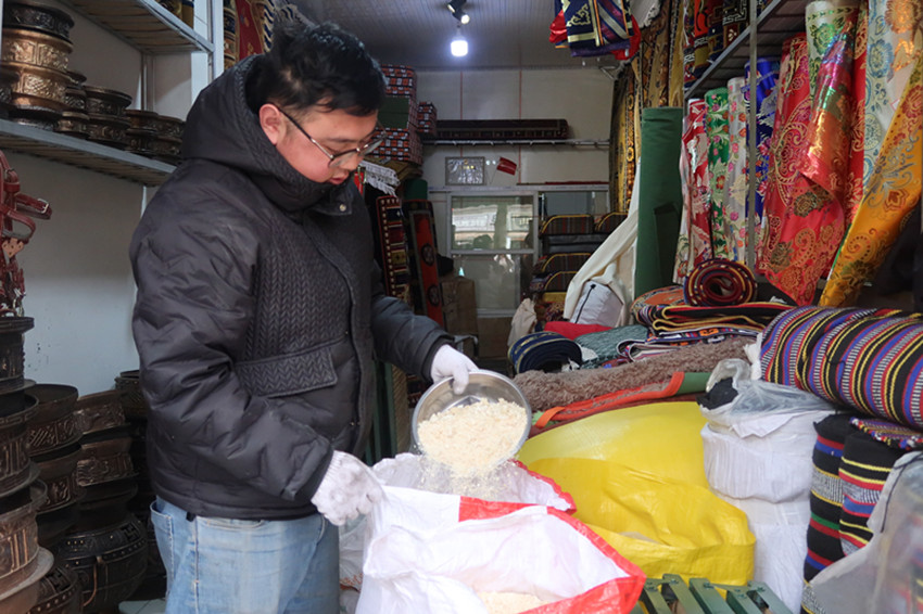 對于馬建文來說,像尼瑪這樣的“回頭客”還真不少,在與客人們打交道的過程中,獨在異鄉(xiāng)的他感受到了道孚群眾的溫暖、團結和互助。“以前偶兒有人來店里‘搗亂’,附近的居民得知此事后,主動站出來幫助我,告訴大家各民族親如一家,要心手相連、和睦互助?!倍嗄赀^去,馬建文至今仍清晰地記得,店鋪剛開業(yè)時,道孚兒女給予他的暖心幫助。