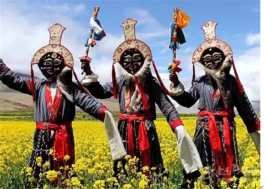 葩,意為面具。是藏族同胞在節(jié)日慶典期間,跳舞時戴在頭上的裝飾品,面具有各種不同形狀、不同色彩和表現(xiàn)風格。根據(jù)制作材料的不同可分為泥料、布料、皮料等不同種類的面具。頭像面具初始于十三世紀末, 除表現(xiàn)人物形象的面具以外,與此同時表現(xiàn)飛禽走獸形象之類的面具亦隨之問世。
