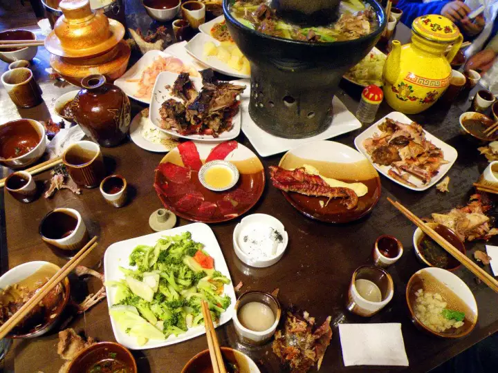 藏餐是中國藏族少數(shù)民族日常食用的菜肴,最具有特色和代表性的藏餐:灌腸、青稞酒、酥油茶、酸奶、牛羊手抓肉、涼拌牦牛舌、糌粑,以及甜茶、烤腸、風干肉、夏普青等。擺上這一大桌,簡直是吃貨的天堂。