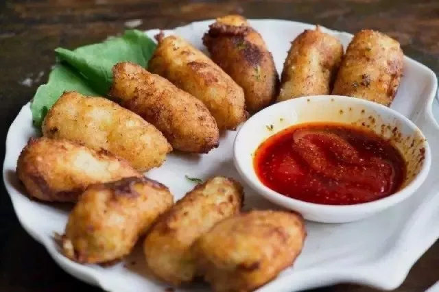 黃金土豆包子略帶有一絲異國風情,土豆泥是其外衣、內(nèi)包裹牛肉餡兒。再裹一層雞蛋和面包糠,放入油中炸熟,土豆泥外衣成黃金色,酥脆可口,牛肉餡味道被全部包裹在內(nèi)部,肉香味十足。