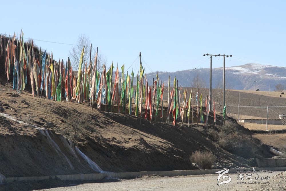 (2)涅槃旗:甘孜州道孚等地沿襲水葬風(fēng)俗,即埋尸河邊或山坡上有大片涅槃旗,向著河流飄向,有讓死者在地獄里減輕痛苦,盡快得到轉(zhuǎn)世。